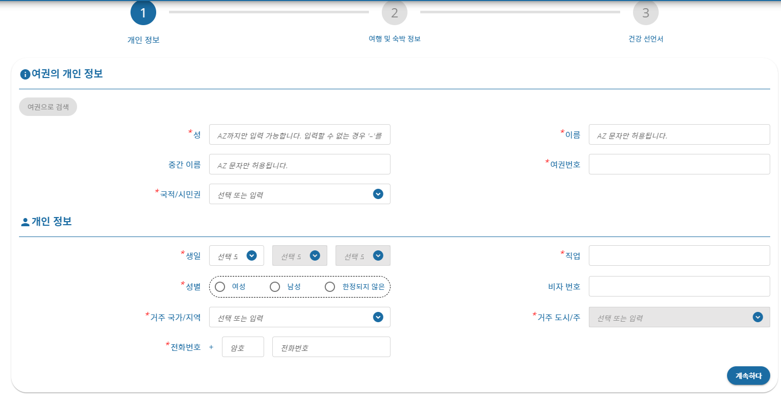 STEP 1. 여권 정보 및 개인정보 입력